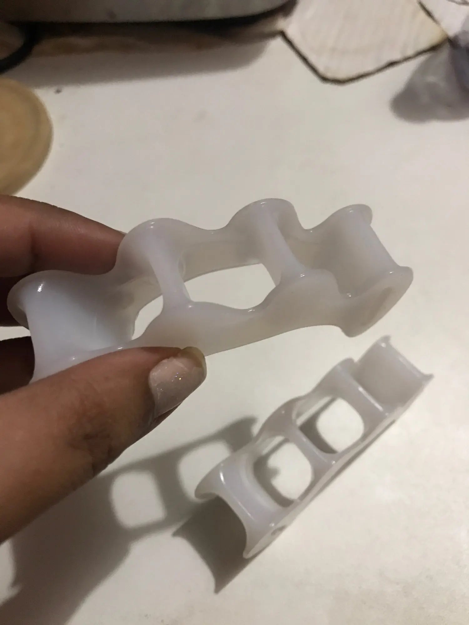 I haven't had enough time to adjust to wearing these to make a full review....but writing this to stop the "give us a review" nag emails. Started putting these on at bedtime for an hour to relieve foot and toe pain from the 12 hour shifts. They are soft, flexible silicone.They fit comfortably enough but again, being a somewhat new position." - Emilia S.